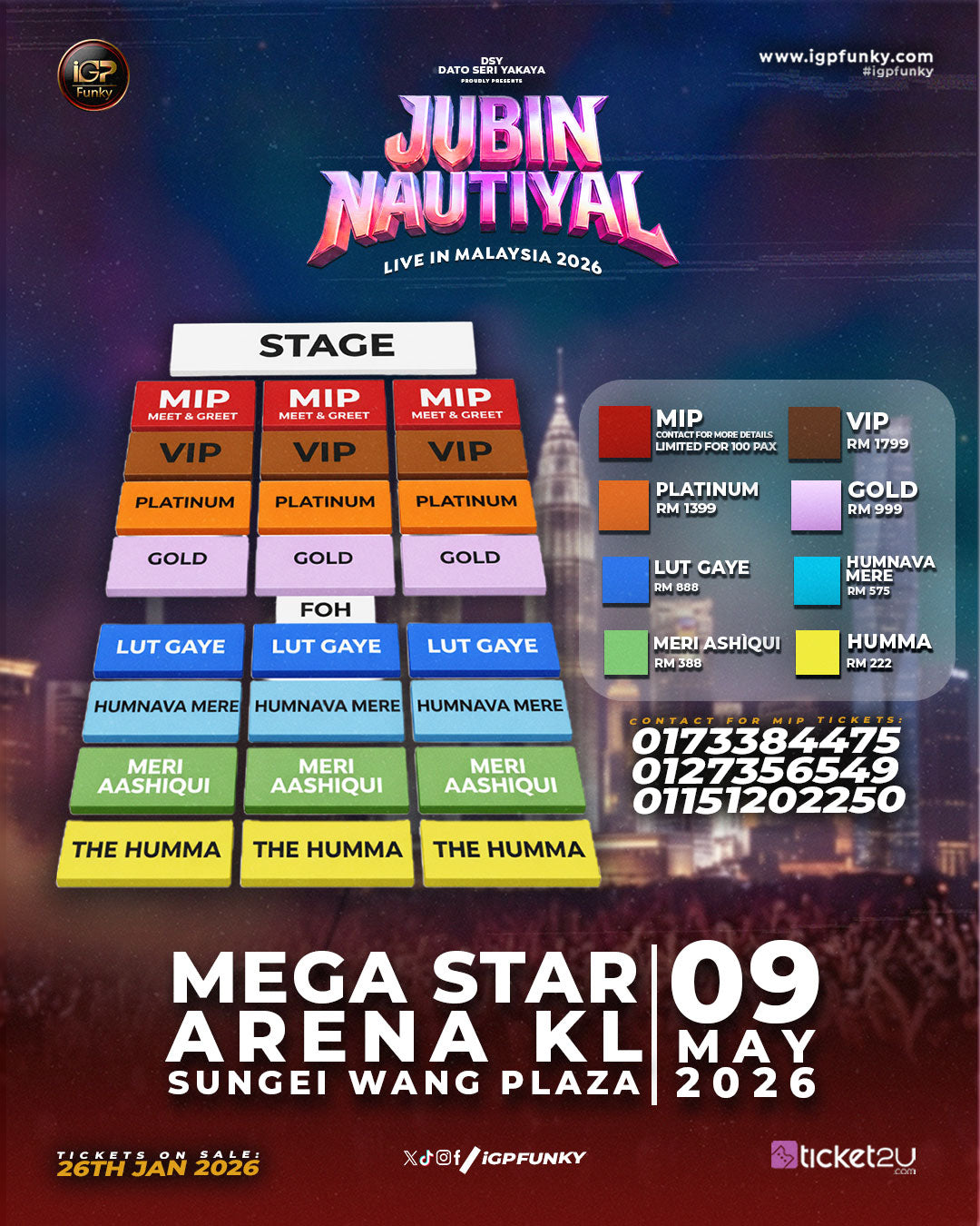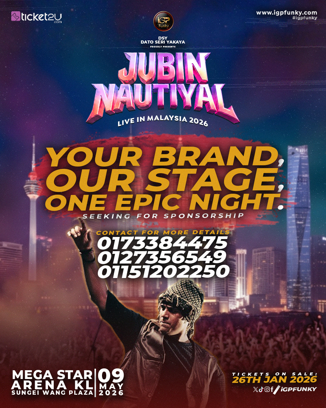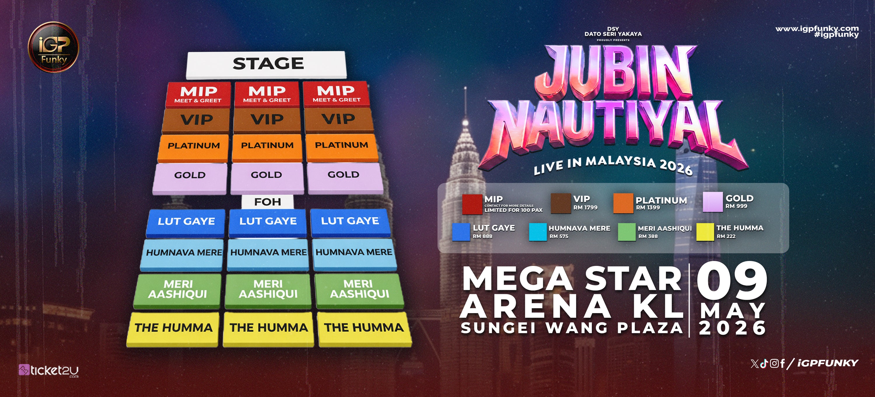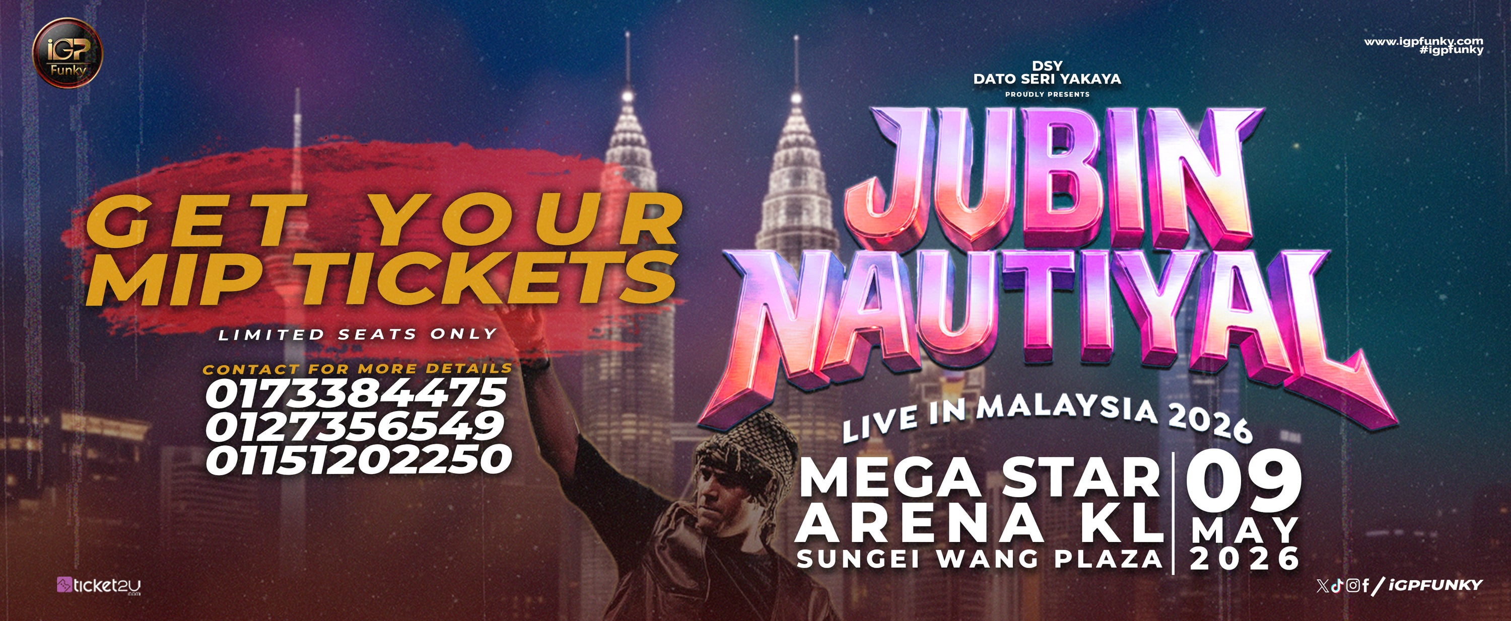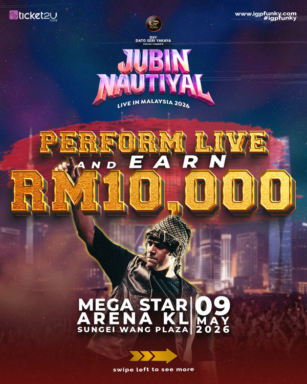 Participants can upload their audition video in Instagram and collaborate with 'iGPFunky' Instagram page. We will choose a performer to perform in 'Jubin Nautiyal Live in Kuala Lumpur' stage. The performer will be given cash prize RM10,000.